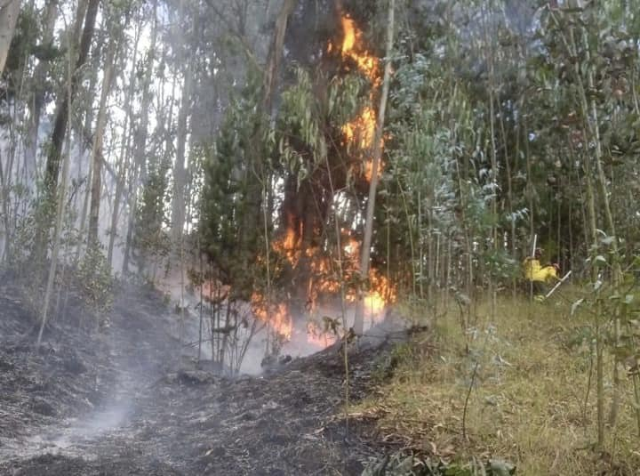 Este domingo se atendió un incendio forestal en el sector de San Juan, en Santa Teresita de Guanug, en el cual se consumió árboles de eucalipto, pinos, entre otras plantas nativas de la zona. Una hectárea fue afectada por las llamas.