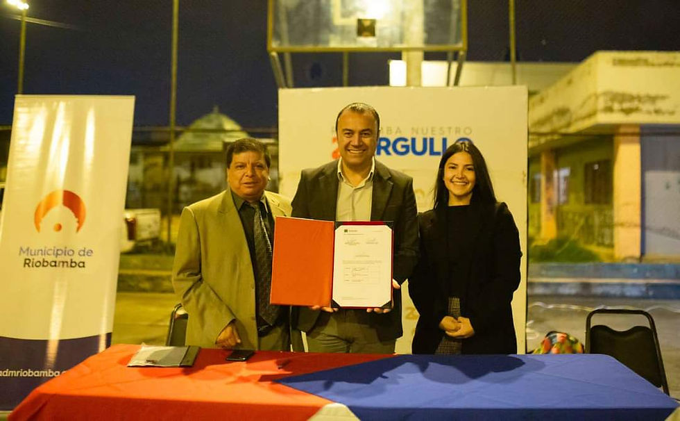 La noche del miércoles 5 de abril, el Municipio Riobamba, firmó el contrato para la rehabilitación del área recreativa del barrio Los Pinos, en beneficio de 150 familias.