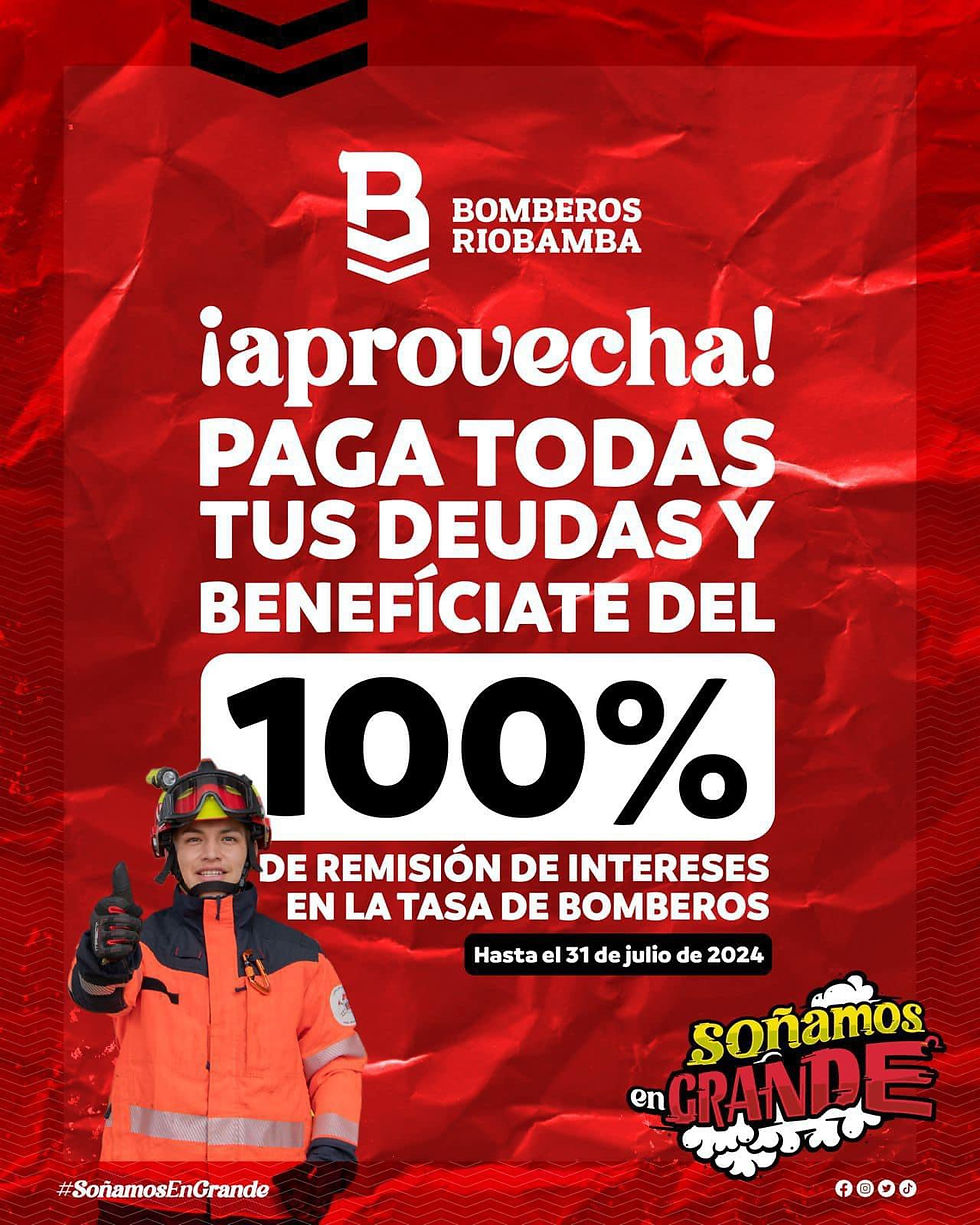 APROVECHA Y BENEFÍCIATE DEL 100% DE REMISIÓN DE INTERESES EN LA TASA DE BOMBEROS