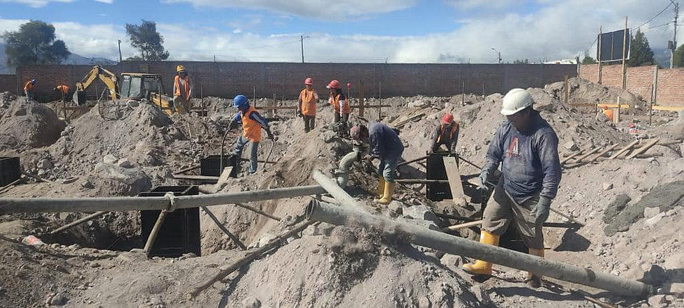 La construcción se realiza en un espacio donde años atrás funcionaba una mina de material pétreo, por tal motivo existió un tanto de dificultad en la excavación para los plintos, por lo demás no ha sido necesario realizar un mejoramiento de suelo.