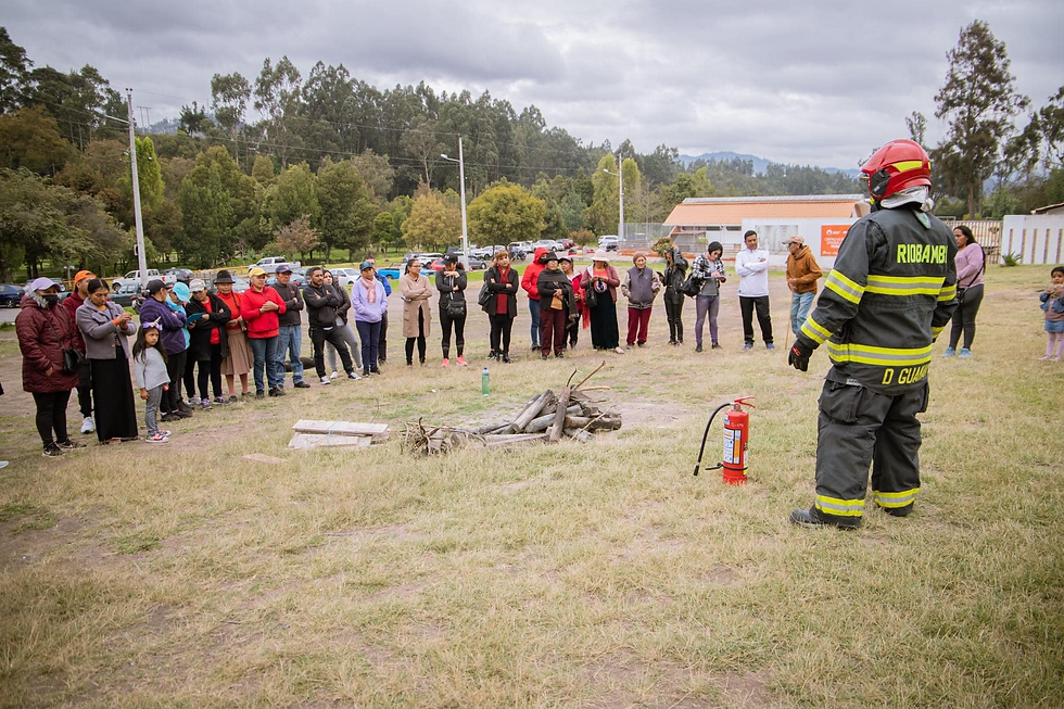 Personal del Cuerpo de Bomberos Riobamba realizaron una capacitación a cerca de 60 miembros del mercado La Esperanza sobre prevención de incendios y uso y manejo de extintores.