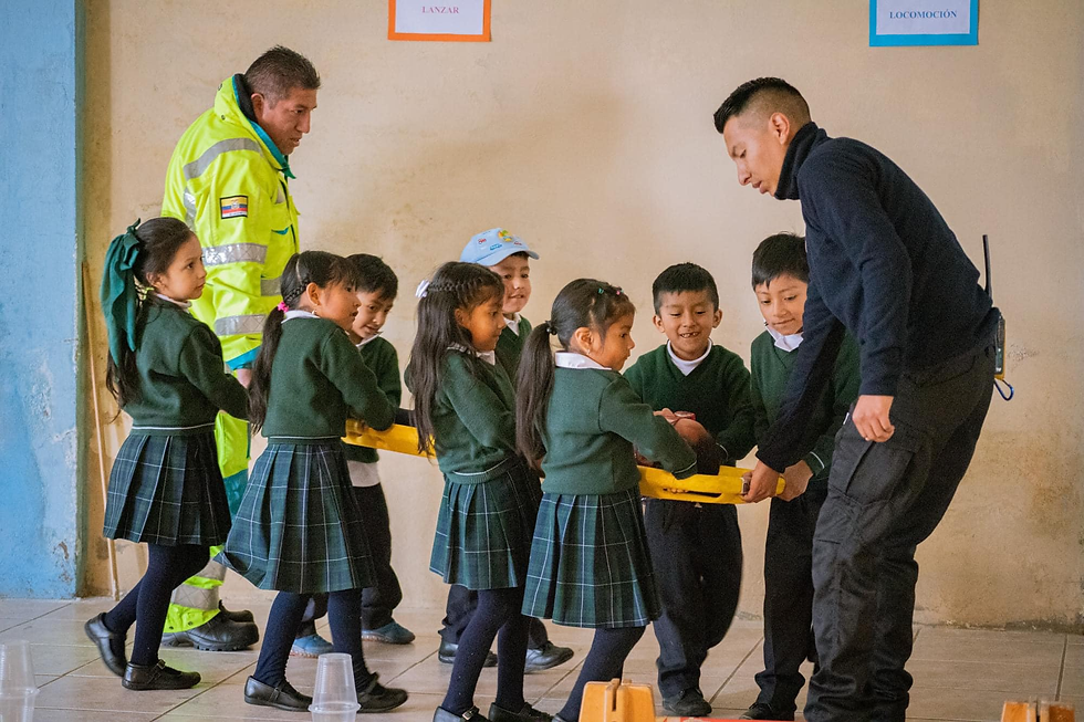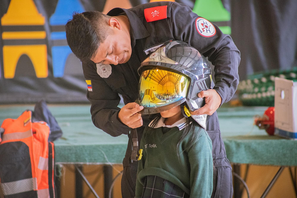 Aquí los niños pudieron realizar una práctica sobre traslado de pacientes, además conocieron sobre los equipos de protección personal y pudieron vestirse como un bombero, aprendieron también sobre el número de emergencia.