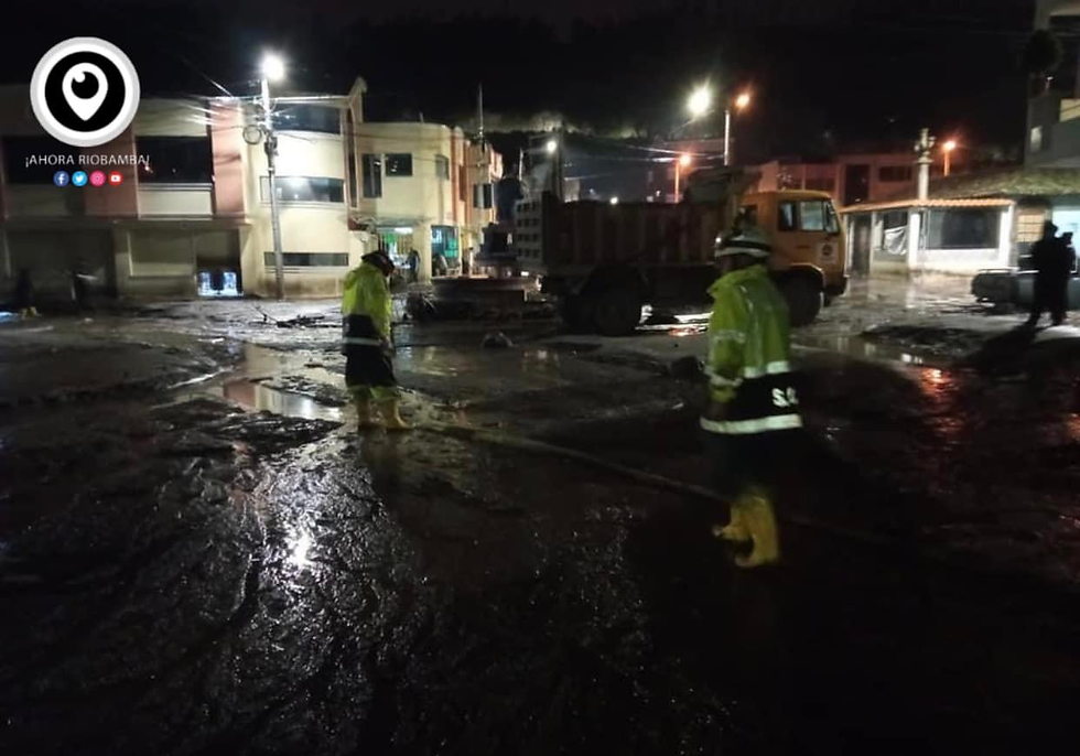 Tras las fuertes lluvias suscitadas en Guano, uniformados del Cuerpo de Bomberos Riobamba (CBR) acudieron a brindar apoyo al cantón vecino.