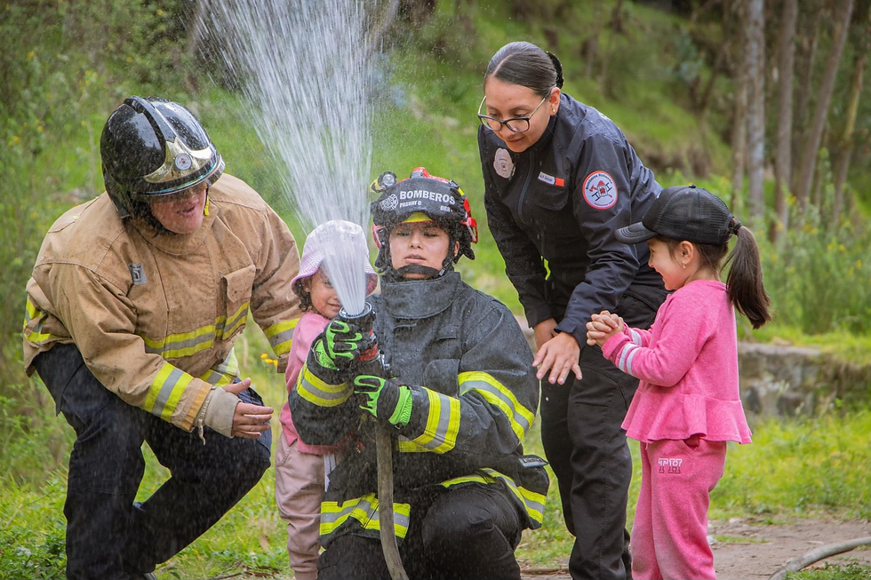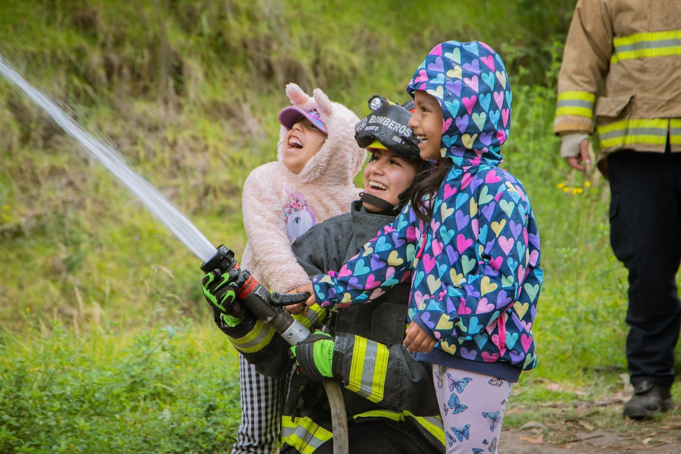 Personal del Cuerpo de Bomberos Riobamba (CBR) brindaron una capacitación a cerca de 100 niños en el sector de Ricpamba, donde hablaron de prevención de incendios, además pudieron conocer las unidades de emergencia y practicar con los chorros de agua.