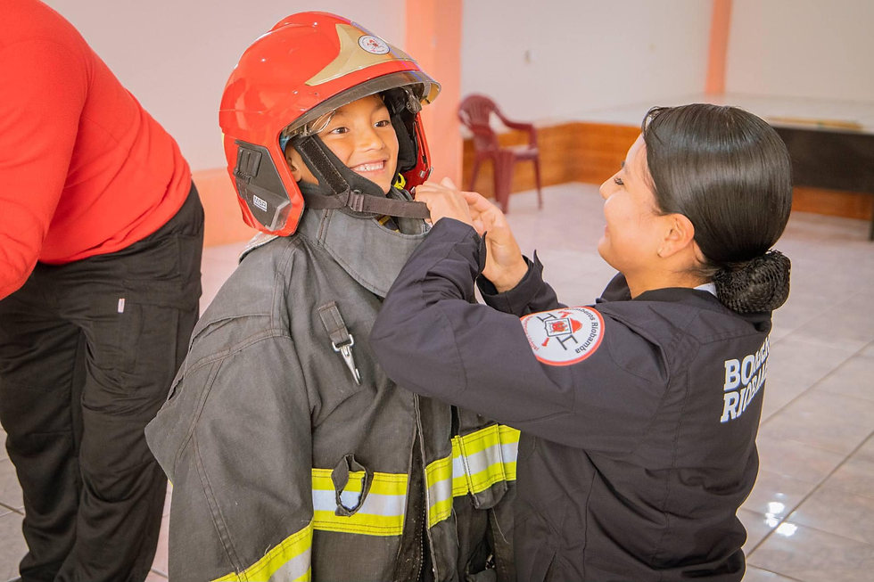Los niños aprendieron sobre el uso y manejo de extintores, además conocieron los equipos de protección personal con los que cuentan y aprendieron sobre primeros auxilios básicos.