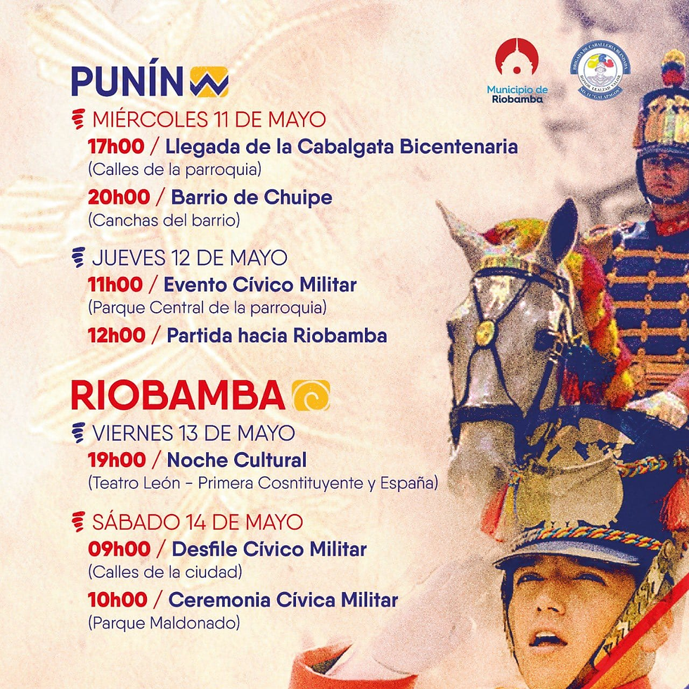 Programación organizada por la Brigada de Caballería Blindada No. 11 Galápagos y el Municipio de #Riobamba para recibir a la #CabalgataBicentenaria del Ejército Patriota, en conmemoración de los #200Años de la #BatallaDelPichincha.
