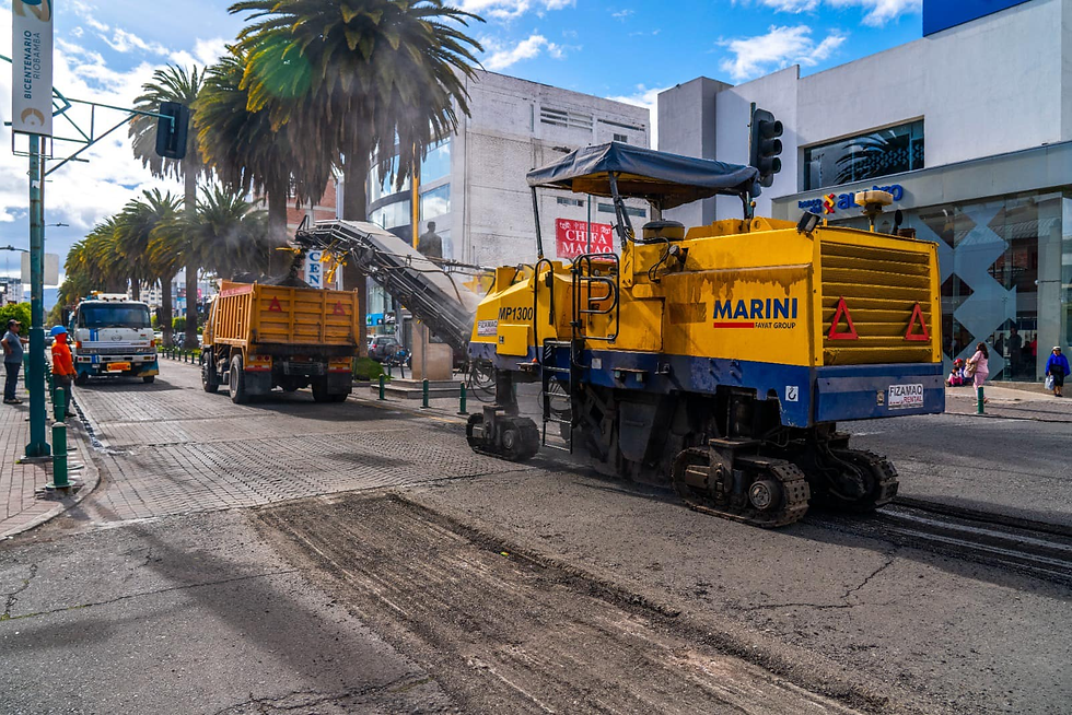 Otro grupo de obreros realizan trabajos de fresado para retirar la carpeta asfáltica existente, que ya cumplió su vida útil y se encuentra con grietas, baches y fisuras. Estas tareas se realizan en la Av. Daniel León Borja entre Av. Miguel Ángel León y la calle Carabobo, de norte a sur, terminado este tramo se realizará el mismo trabajo, pero en sentido sur – norte; una vez se concluya con el retiro del asfalto se pasará al proceso de imprimación y de instalación de la capa asfáltica que tendrá un espesor de 5 cm.