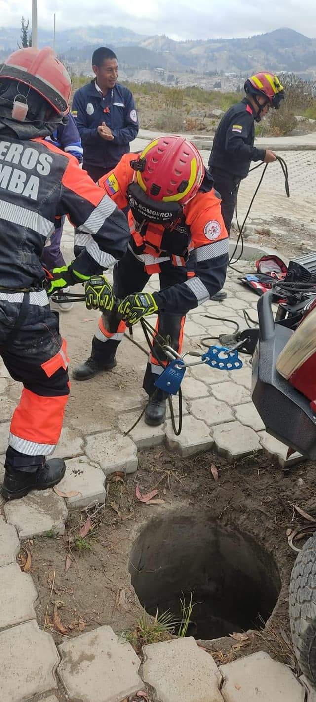 CUERPO DE BOMBEROS RIOBAMBA ACUDIERON AL RESCATE DE UNA VÍCTIMA QUE HABRÍA CAÍDO EN UNA ALCANTARILLA