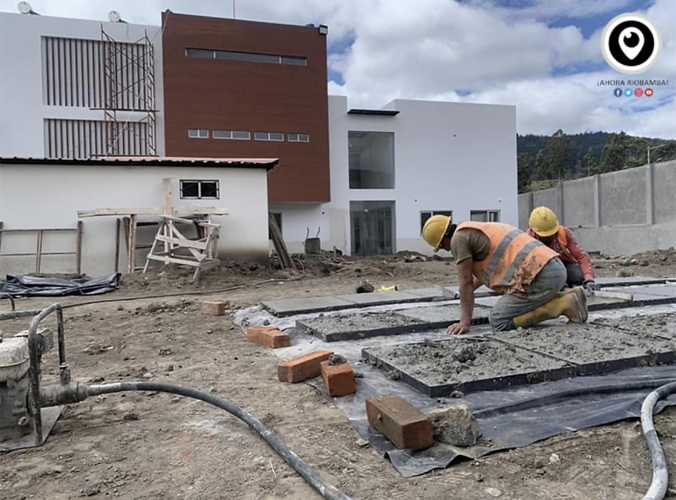 Los trabajos estructurales y acabados del edificio están dentro de los plazos de ejecución del contrato. Al momento las actividades están focalizadas en las áreas exteriores como encespados, bordillos, contrapisos y adoquinados.