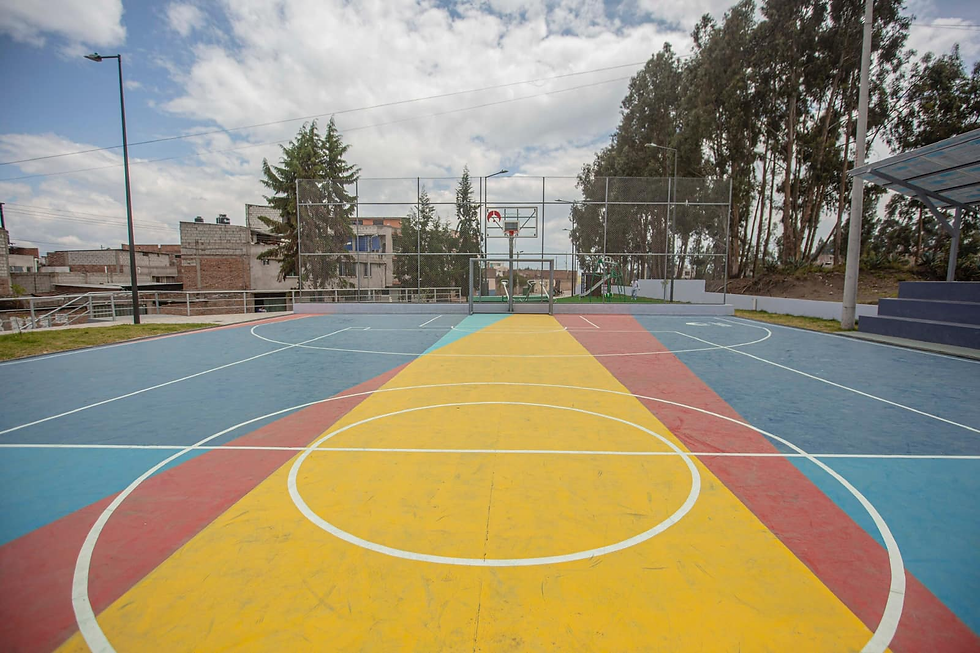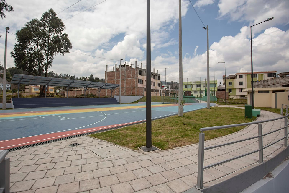 Todos los componentes de la obra se encuentran a punto. La colorida cancha y los juegos infantiles, además del gimnasio al aire libre destacan de esta nueva infraestructura que entregará el Municipio de Riobamba, junto a 4 nuevas áreas recreativas que también ya culminaron sus procesos de construcción, mismas que son: San Luis del Norte, La Paz, Mirador Bajo y Bellavista Alto.
