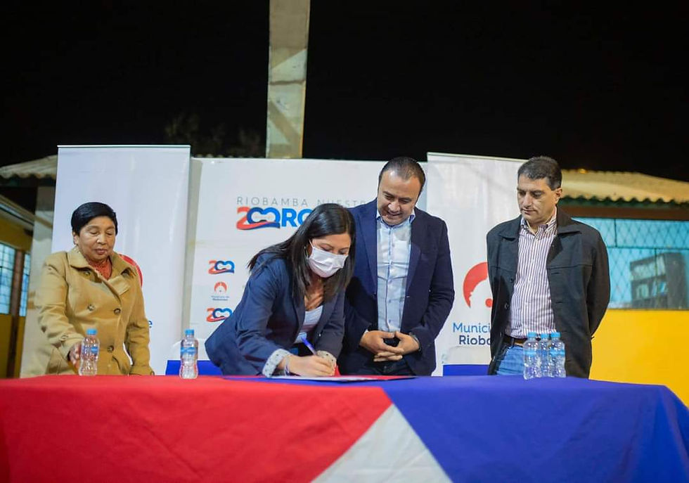 En este contexto, durante la noche de este lunes 20 de marzo de 2023, se llevó a cabo la firma para el contrato del proyecto de reconstrucción del área recreativa de la Ciudadela Juan Montalvo, ubicada en el sector de la Escuela Superior Politécnica de Chimborazo.