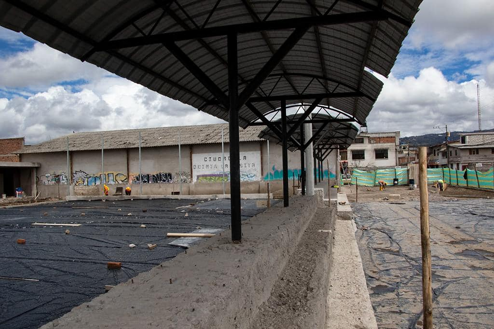 Pablo Monge, contratista de esta obra indica que durante el proceso constructivo se han conservado varios elementos que se han rehabilitado, principalmente en relacion al mantenimiento de la estructura y funcionamiento del coliseo existente. De igual forma se realizan trabajos para la construccion de una nueva batería sanitaria y la readecuacion de la cancha de uso multiple y cancha de voley.