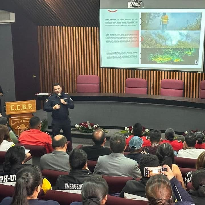 Además, el Cap. Orlando Vallejo Lara, comandante de la institución, tuvo el honor de ser ponente en el simposio local con una charla sobre "Uso de Drones y Tecnología para la Atención de Emergencias - Incendios Forestales".