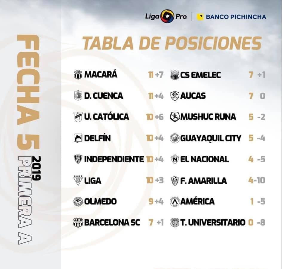 Jugada la Fecha 5 del campeonato ecuatoriano de fútbol, el ídolo #riobambeño se encuentra ubicado en la séptima posición con 9 puntos.