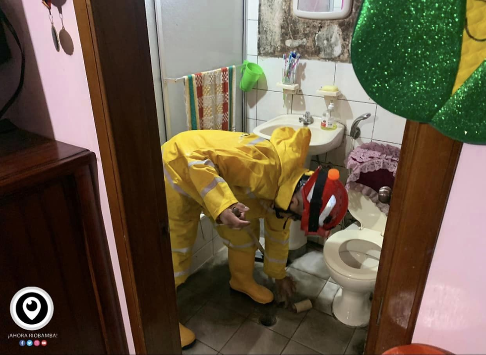 Tras la fuerte lluvia suscitada en horas de la tarde, uniformados del Cuerpo de Bomberos Riobamba (CBR) acudieron al llamado ciudadano, con el fin de evacuar el agua lluvia en los domicilios que resultaron afectados.