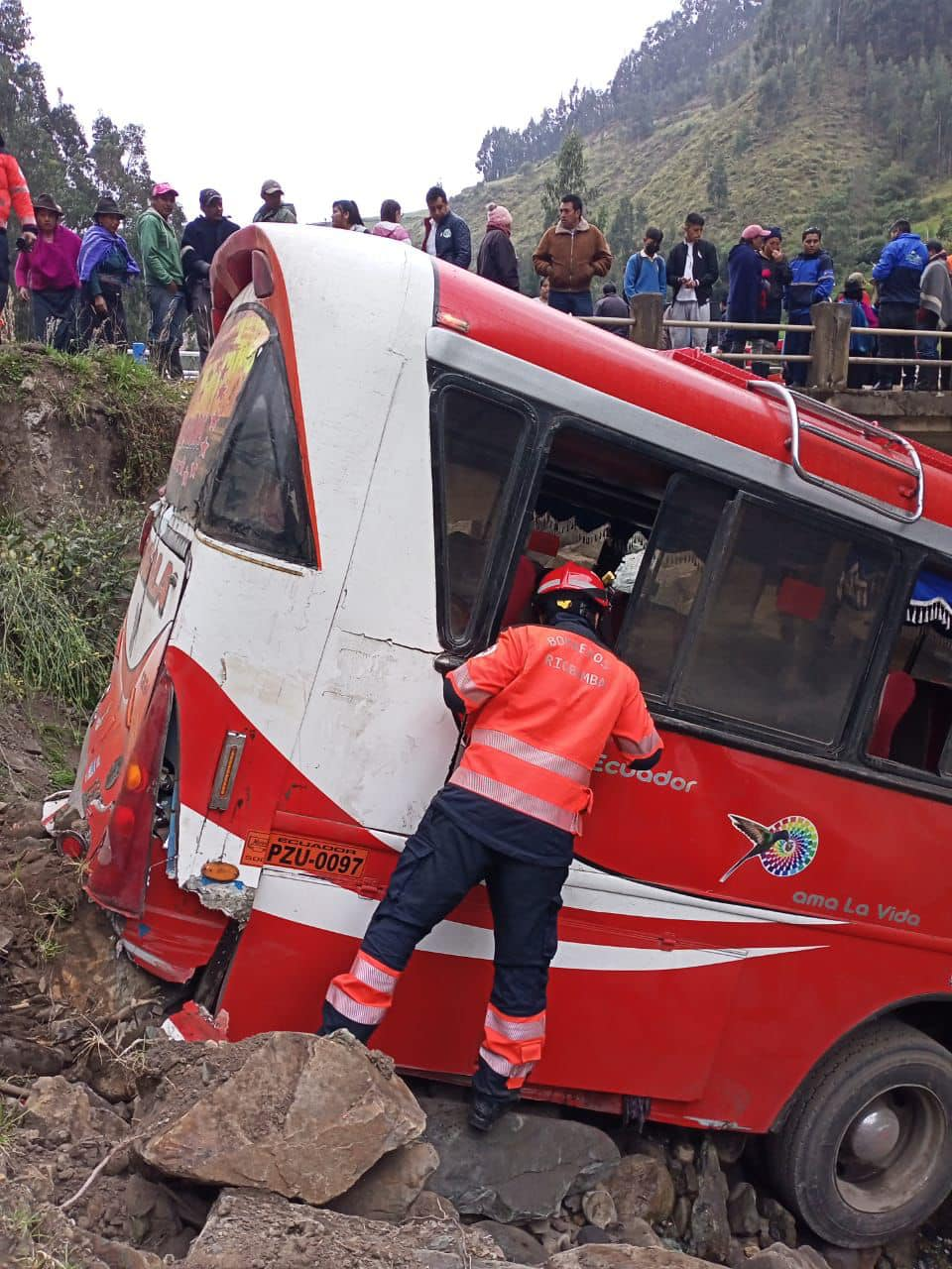 El equipo de rescate y paramédicos del Cuerpo de Bomberos Riobamba (CBR) acudieron hasta el lugar con el fin de brindar ayuda a los afectados de este siniestro de tránsito que dejó varias personas heridas.